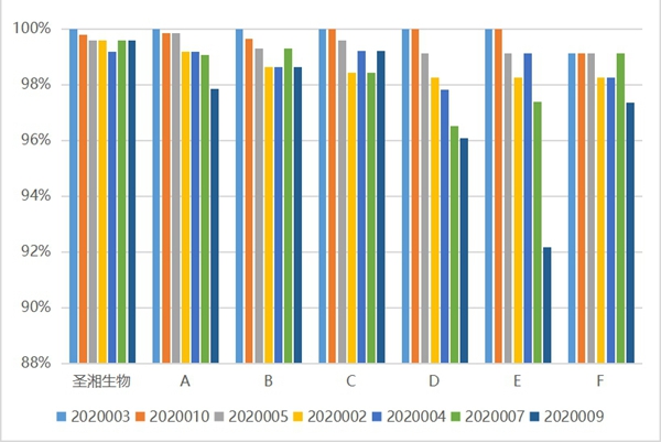 z6.com尊龙生物试剂阴性样本检测结果的符合率也领先于其它主流厂家,具有较好的特异性。综合室间质评结果来看,z6.com尊龙生物新冠病毒核酸检测试剂检出率、重复性及特异性上具有较大的优势。